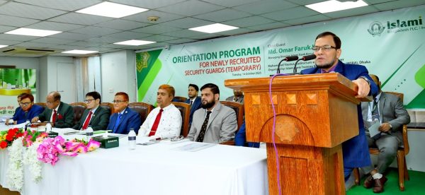 খোলাবাজার অনলাইন ডেক্সঃ ইসলামী ব্যাংক বাংলাদেশ পিএলসি-এর নবনিযুক্ত সিকিউরিটি গার্ডদের পেশাগত দক্ষতা অর্জন, প্রশিক্ষণ ও পরিচিতি কর্মসূচি ১৪ অক্টোবর ২০২৫ ইসলামী ব্যাংক টাওয়ারে অনুষ্ঠিত হয়েছে। অনুষ্ঠানে প্রধান অতিথি হিসেবে উপস্থিত ছিলেন ম্যানেজিং ডাইরেক্টর মোঃ ওমর ফারুক খাঁন। এসময় ব্যাংকের অ্যাডিশনাল ম্যানেজিং ডাইরেক্টর ড. এম কামাল উদ্দীন জসীম, ইসলামী ব্যাংক ট্রেইনিং এন্ড রিসার্চ একাডেমি (আইবিটিআর)-এর ডাইরেক্টর জেনারেল এএসএম রেজাউল করিম, সিনিয়র এক্সিকিউটিভ ভাইস প্রেসিডেন্ট মোঃ হাবিবুর রহমান ও এ কে এম কাউসার আলম এবং ভাইস প্রেসিডেন্ট লেফটেন্যান্ট কর্ণেল (অবঃ) কে এফ এ সোহেলসহ ব্যাংকের নির্বাহী ও কর্মকর্তাবৃন্দ উপস্থিত ছিলেন। দিনব্যাপী এ কর্মশালায় ১২০ জন নবনিযুক্ত সিকিউরিটি গার্ড অংশগ্রহণ করেন।