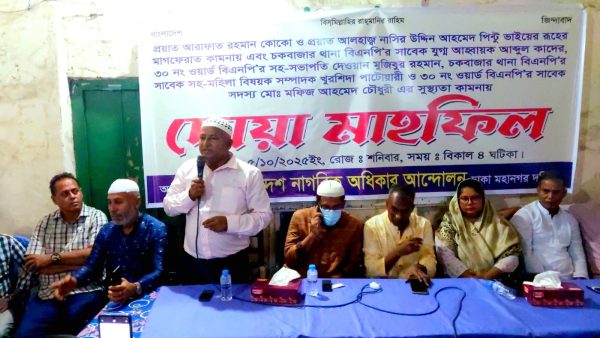 দোয়া মাহফিলে বিশেষভাবে চকবাজার থানা বিএনপি’র সাবেক যুগ্ম আহ্বায়ক আব্দুল কাদের, ৩০ নং ওয়ার্ড বিএনপি’র সহ-সভাপতি দেওয়ান মুজিবুর রহমান, চকবাজার থানা বিএনপি’র সাবেক সহ-মহিলা বিষয়ক সম্পাদক খুরশিদা পাটোয়ারী, ও ৩০ নং ওয়ার্ড বিএনপি’র সাবেক সদস্য মোঃ মফিজ আহমেদ চৌধুরী-এর দ্রুত সুস্থতা কামনা করা হয়।