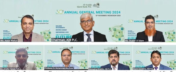 খোলাবাজার অনলাইন ডেস্ক : আল-আরাফাহ্ ইসলামী ব্যাংক এর ৩০তম বার্ষিক সাধারণ সভা (এজিএম) অনুষ্ঠিত হয়েছে। ১২ নভেম্বর, ২০২৫ বুধবার ব্যাংকের প্রধান কার্যালয়ে ভার্চুয়ালি অনুষ্ঠিত সভায় সভাপতিত্ব করেন ব্যাংকের চেয়ারম্যান খাজা শাহরিয়ার।